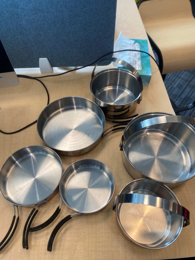 Lots of lightweight Camp Pots, comes in a kit all nestled into large pot
